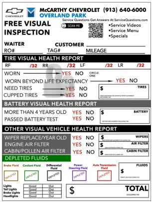 The service drive walk-around not only lets the customer see for themselves what maintenance is needed but the routine builds trust and rapport with the customer. However, everybody’s recall and attention span (customers included) seems less every day including what advisors tell customers on the service drive so it’s best to use service drive walk around inspection sheets that can be given to the customer.