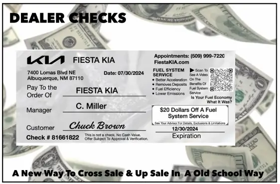 Dealer Checks. Onsite Cross Selling Checks. Print On Demand Promotional Checks & Share With Customers